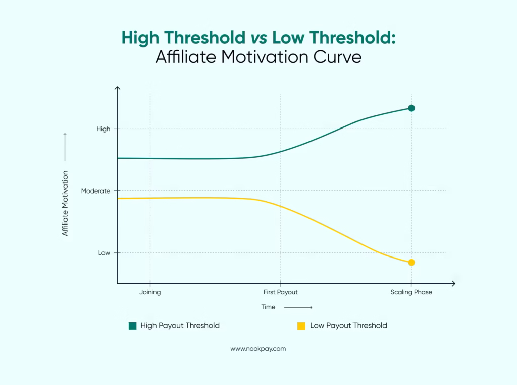 Brands use thresholds to manage payment processing and costs. However, when thresholds are set too high, they can quickly discourage affiliates, especially those who are new or still testing a program.